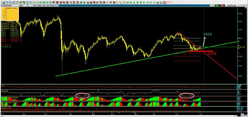 1376 altında bir kapanış görmediğimiz sürece yön yukarı olup teknik olarak direnç noktası 1434 olarak karşımıza çıkmakta.